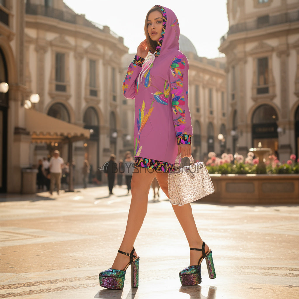 Embrace comfort and style with this Women’s Hoodie Dress. Its vibrant all-over print brings a lively touch to your wardrobe, making it perfect for casual outings or cozy nights in. Feel confident and chic as you slip into this soft, durable fabric that maintains its shape and dries quickly. Ideal for relaxed weekend brunches, picnics in the park, or lounging at home, this hoodie dress seamlessly fits into your lifestyle. It’s also a fantastic gift for friends and family during holidays, birthdays, or any celebration, ensuring they remain stylish and comfortable. Whether you're enjoying a laid-back day or dressing up for a casual event, this hoodie dress is a versatile addition to any closet.